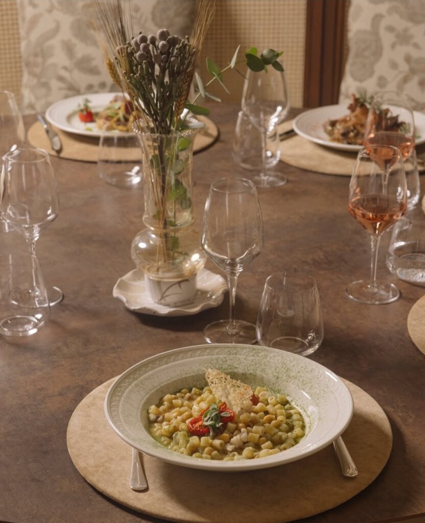 Finozzi Group ha curato con passione la fornitura di piatti, tovagliati, sedute e arredi esterni per la raffinata Masseria San Lorenzo, un luogo che racchiude l’autentica eleganza del Sud Italia.
